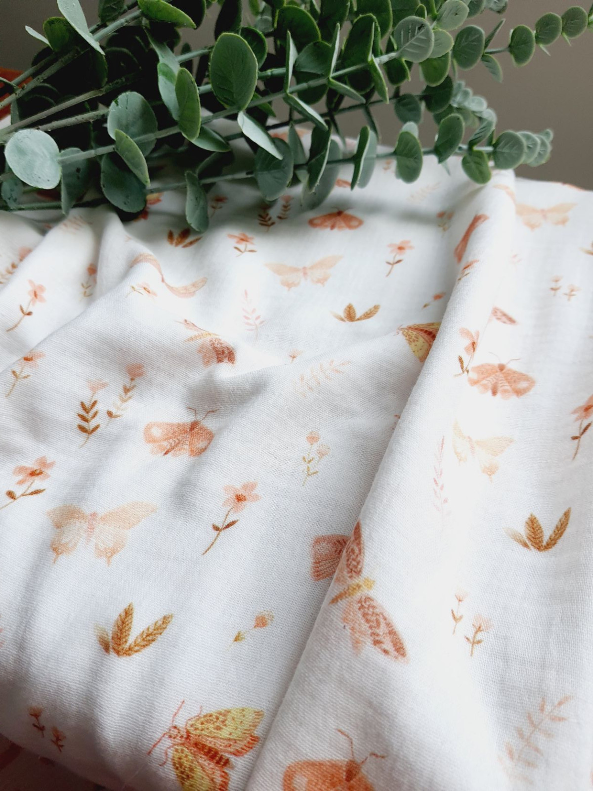 Douce double gaze de coton sublime Papillon et fleurs des champs