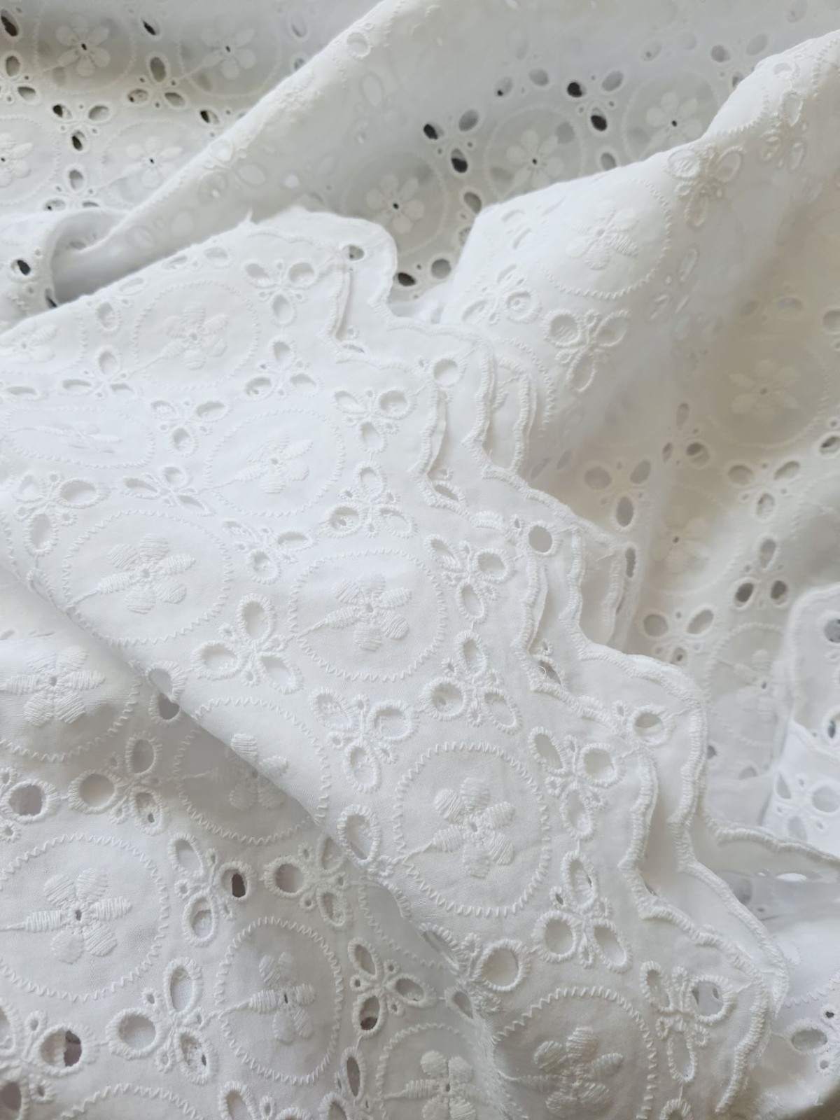 Tissu coton broderie Anglaise Victoria florale blanc