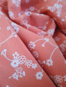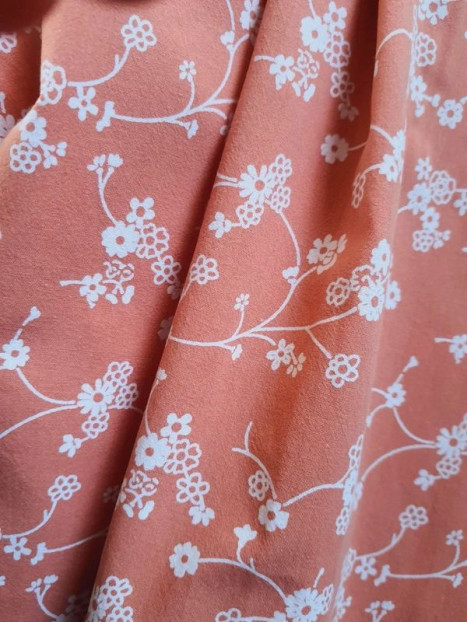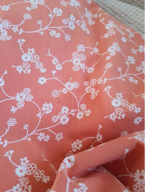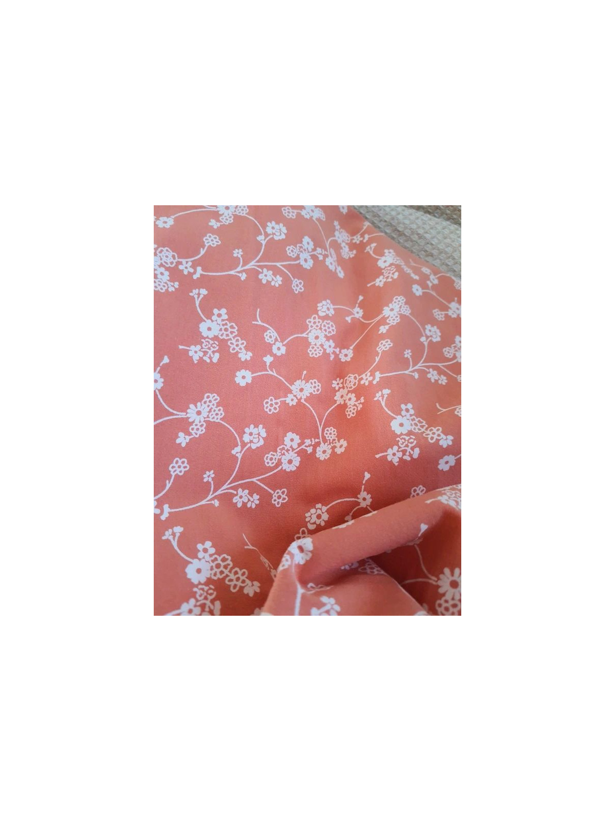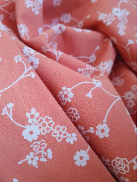 Imprimé florale doux Fond de tissus rose saumon 🫠 Laize 150cm Poids : 120g/m2 L'aspect du coton lavé : un aspect doux et naturel comme le lin lavé. Le tissu est teint et lavé qui lui donne un aspect légèrement texturé ! 💐💐