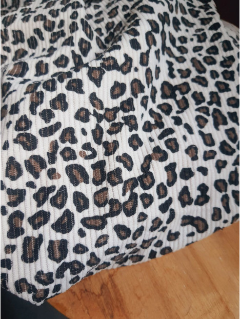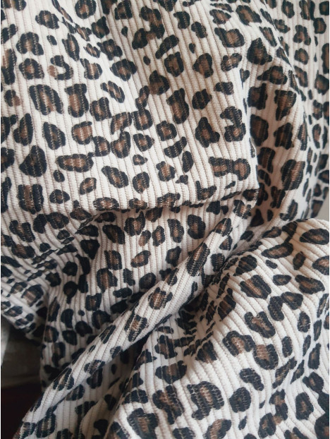 Tissus RIB velours côtelé Imprimé Léopard Beige